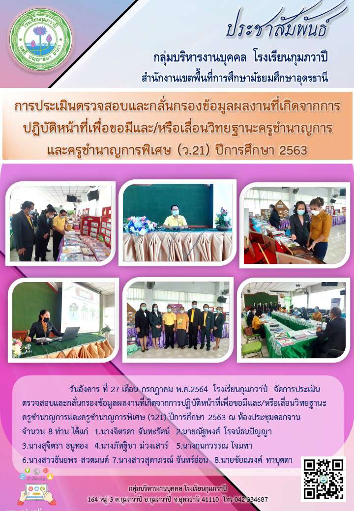 การประเมินตรวจสอบและกลั่นกรองข้อมูลผลงานที่เกิดจากการปฏิบัติหน้าที่เพื่อขอมีและ/หรือเลื่อนวิทยฐานะครูชำนาญการ และครูชำนาญการพิเศษ (ว.21) ปีการศึกษา 2563